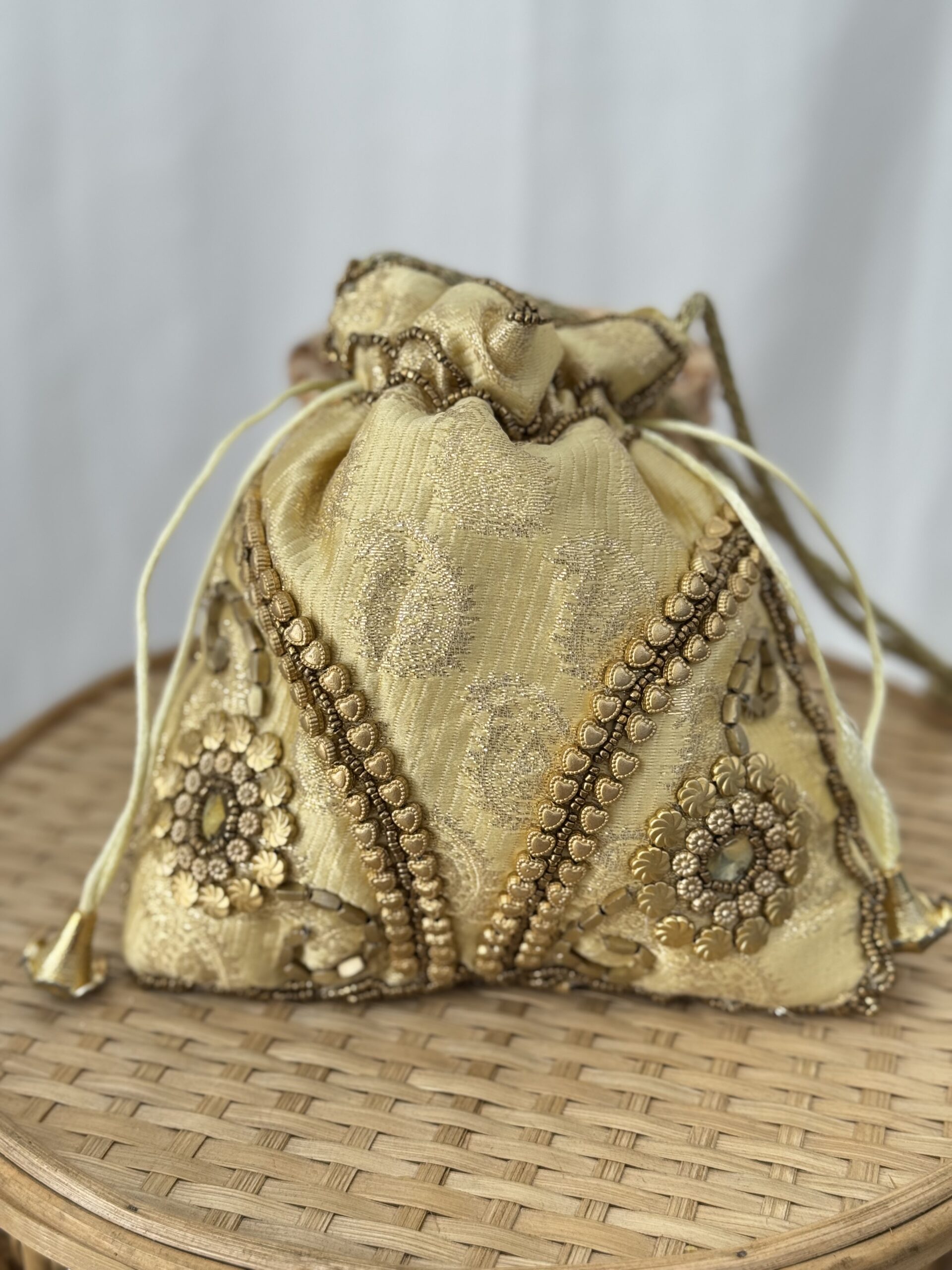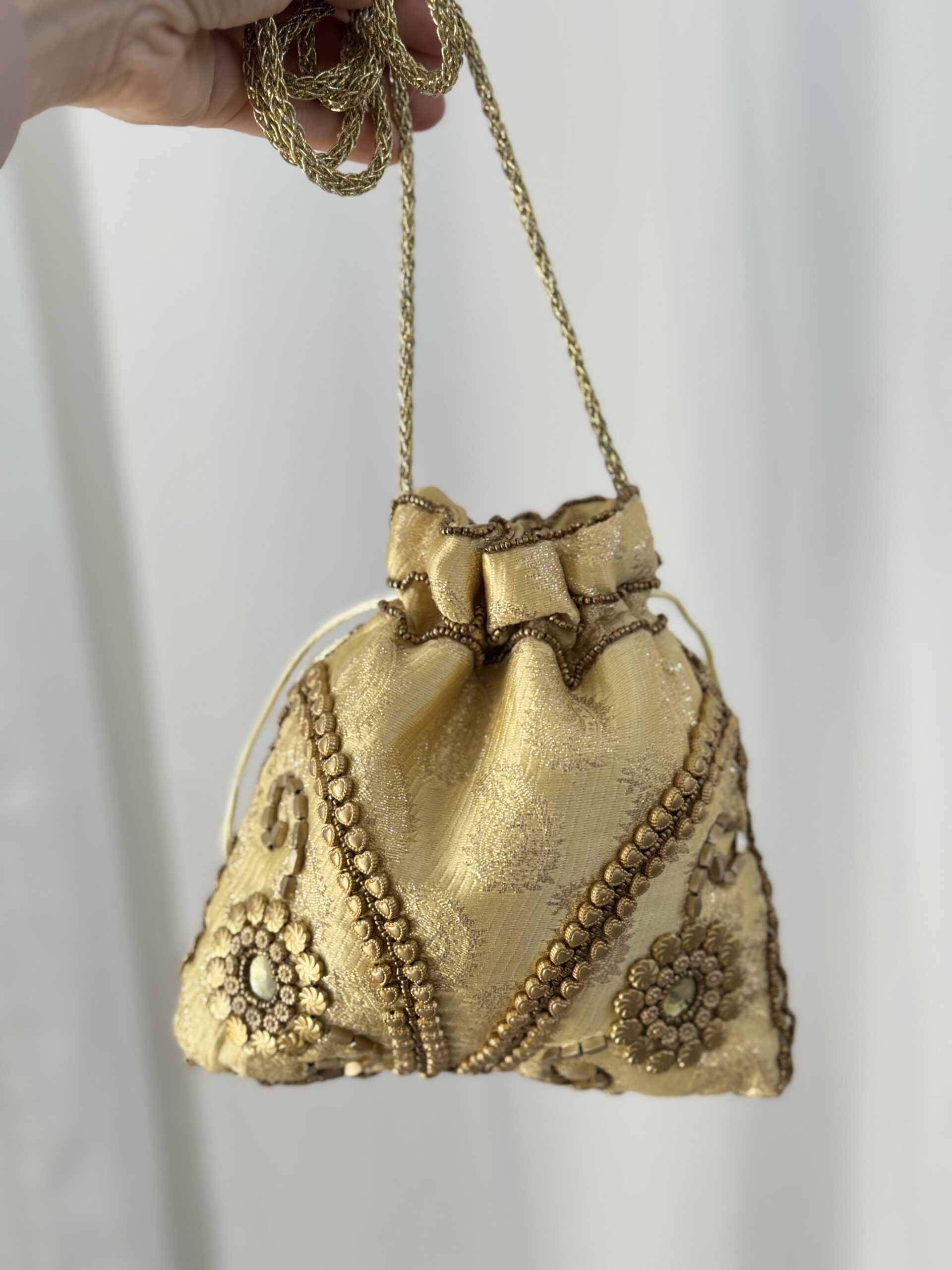 Bolso tipo bombonera de la colección India, totalmente artesanal.