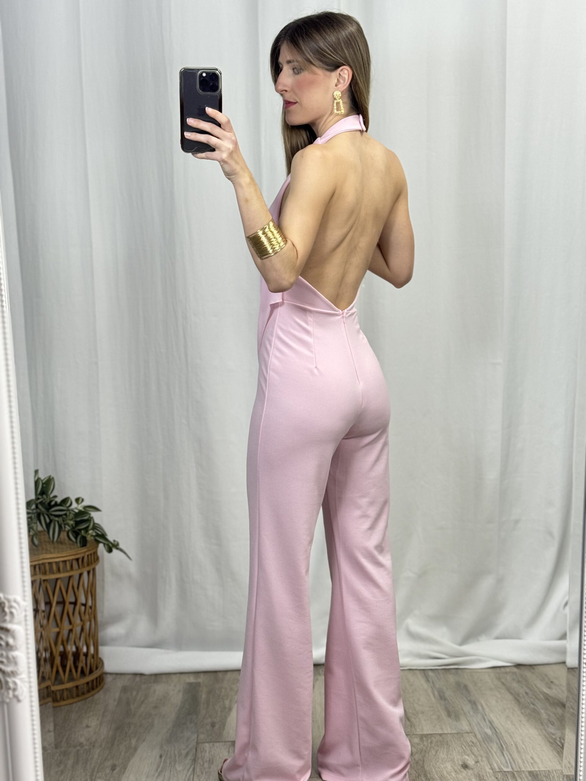 Mono talla única con capa de gasa y escote en espalda. Sirve desde una talla 34 a una 38/40 aprox.