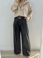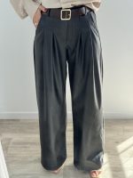 Pantalón palazzo talla única de polipiel. El cinturón viene incluido, tiene un corte muy estiloso y que estiliza mucho y la parte interior es muy suave y gustosa. Tiene goma elástica en la parte trasera de la cintura y no lleva ni botón ni cremallera. Es perfecto para todos tus looks de otoño/invierno.