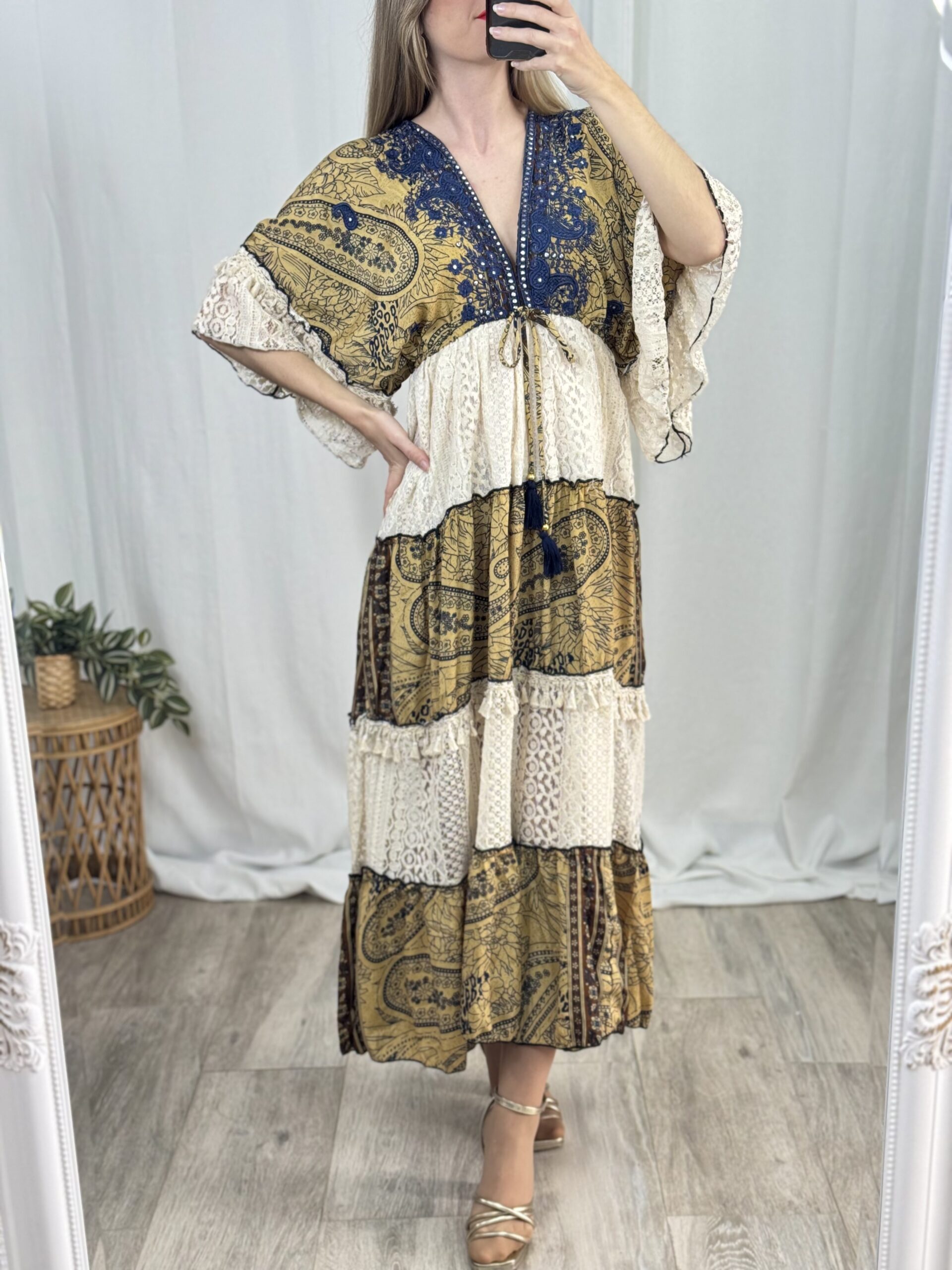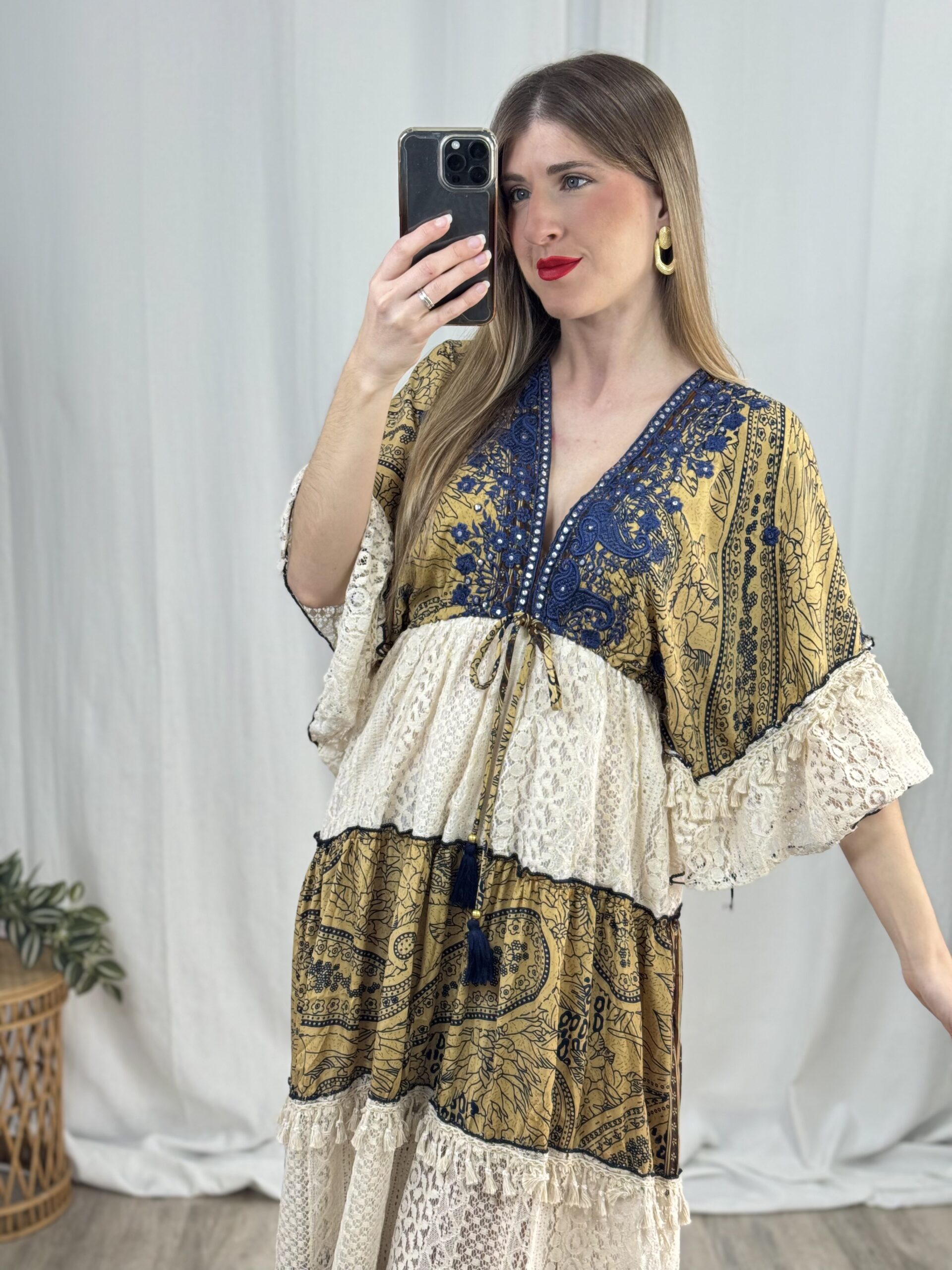 Vestido de fabricación india con diseño exclusivo y estilo boho. Talla única.