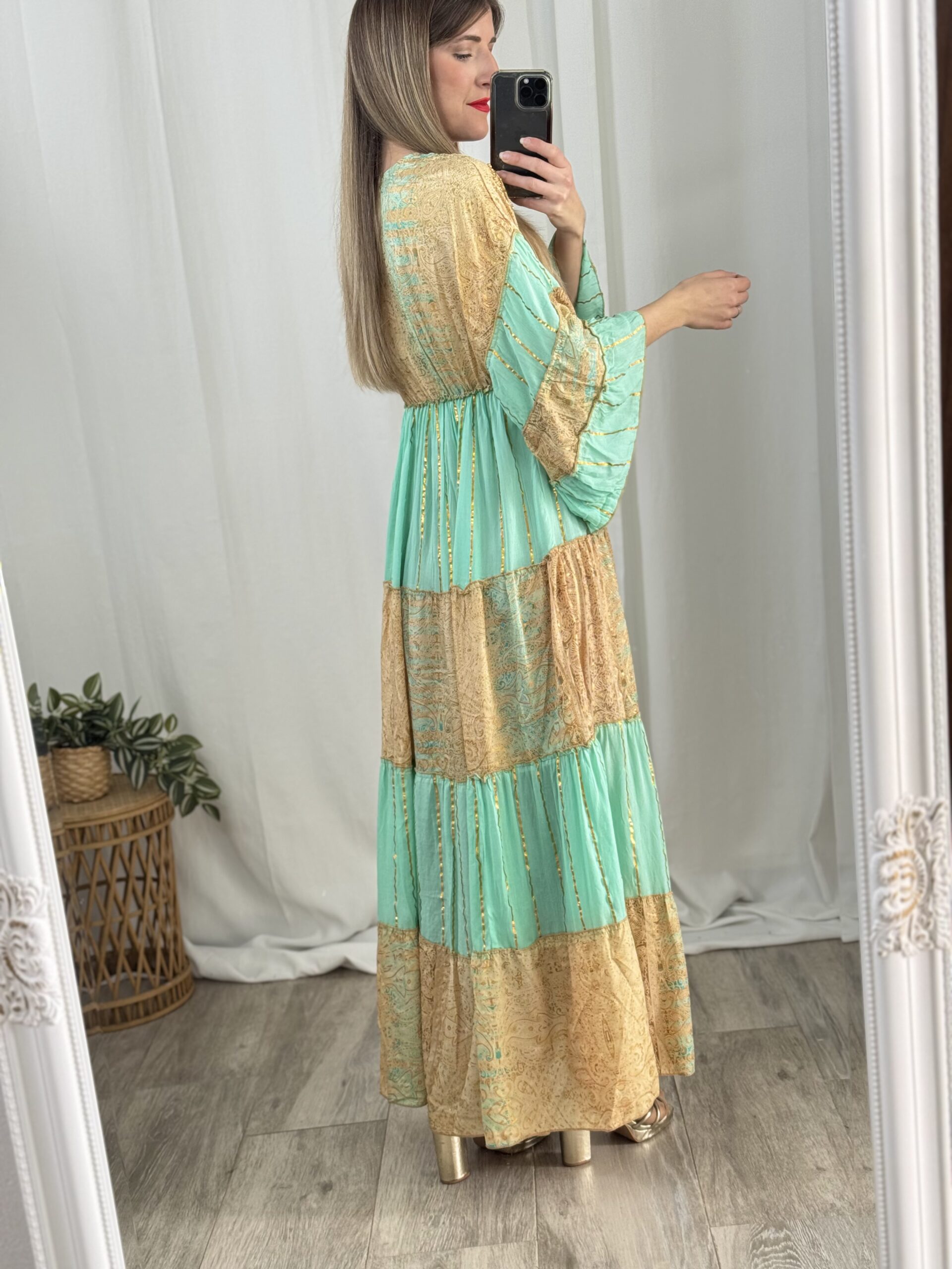 Vestido de fabricación india con diseño exclusivo y estilo boho. Talla única.