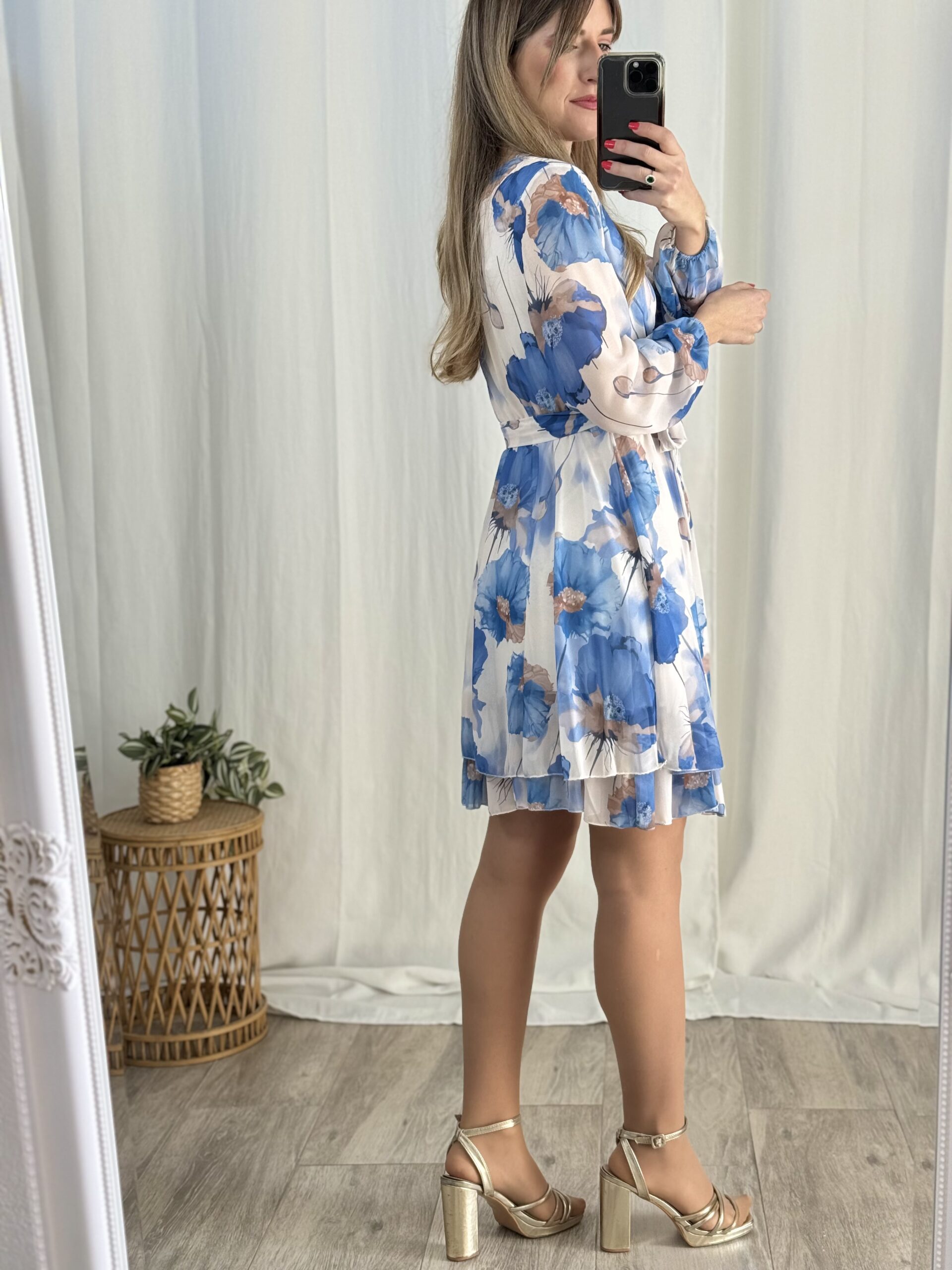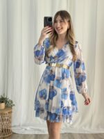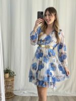 *Cinturón rígido dorado no incluido (puede comprarse en el apartado «accesorios-cinturones») Sí incluye la lazada del mismo tejido y estampado que el vestido.